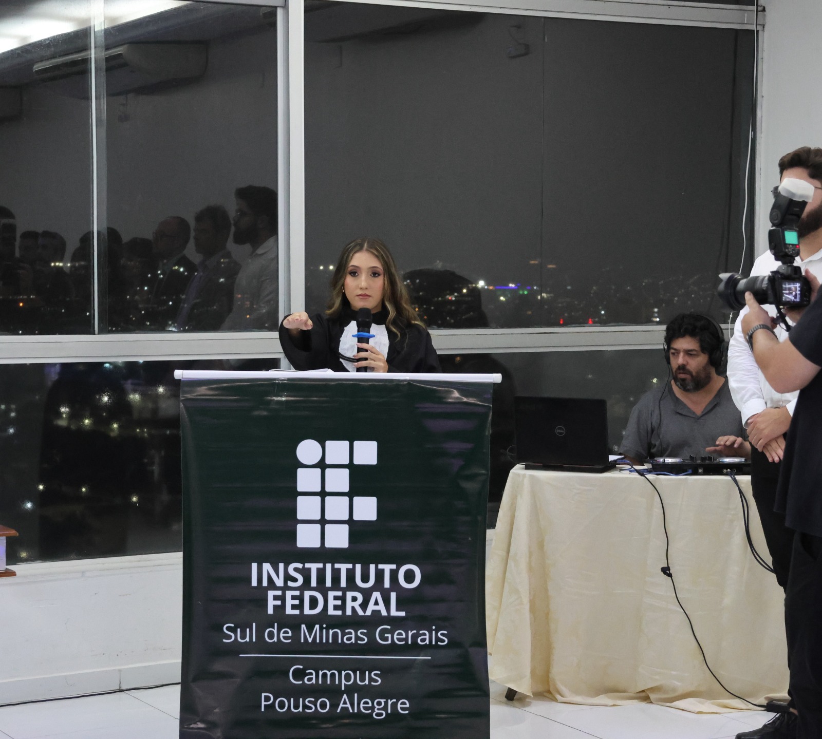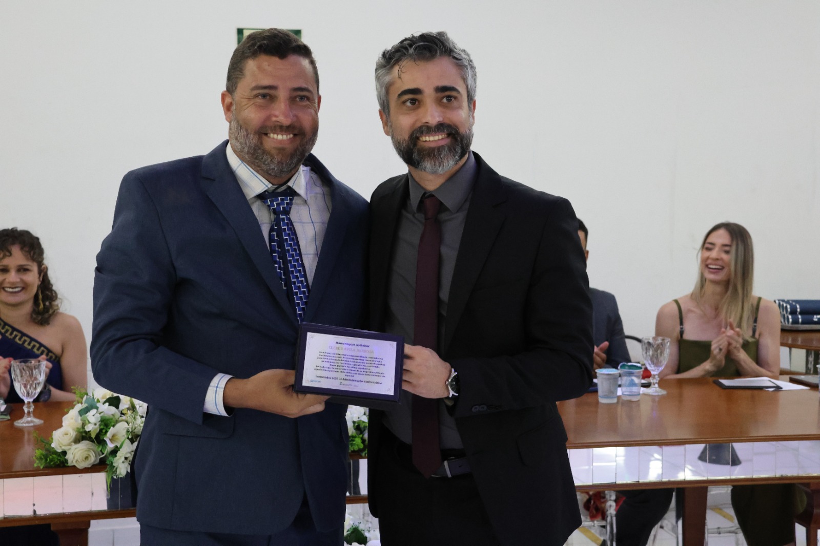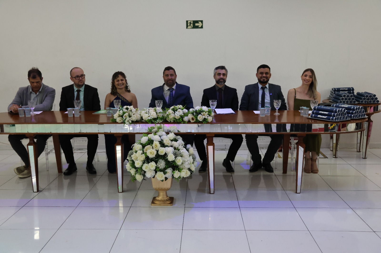 A Mesa Diretora da cerimônia foi presidida pelo Diretor de Desenvolvimento e Relações Institucionais do IF, Luis Adriano Batista, que representou o Reitor, Professor Cléber Ávila Barbosa. O evento também contou com a presença do Diretor- Geral, Professor Alexandre Fieno; da paraninfa das turmas, Professora Emanuelle Kopanyshyn; do Professor Leonardo dos Santos Maria, Patrono da turma de Administração; do Professor Luís Antônio Tavaraes, Patrono da turma de Informática; da Professora Danielle Martins Duarte Costa, homenageada da turma de Administração; e do Professor Rogério Coli da Cunha, homenageado da turma de Informática.