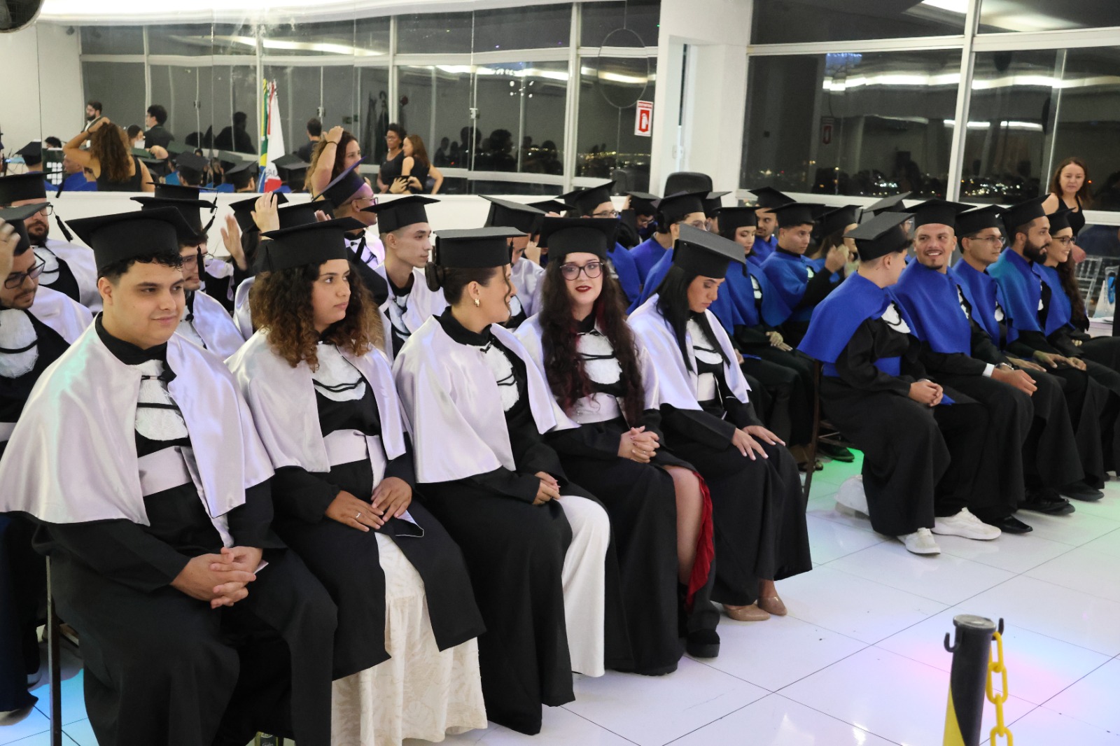 O Diretor-geral, professor Alexandre Fieno, conduziu um discurso que refletiu sobre a trajetória dos alunos e a importância da reflexão nesse momento de celebração. "Hoje não é apenas uma colação de grau. É uma consagração de uma trajetória que deu certo". Afirmou que a jornada até ali, embora repleta de desafios, levou à formação e capacitação necessárias para o mercado de trabalho. O juramento feito durante a cerimônia simbolizou um pacto de compromisso e responsabilidade social que cada um deve cultivar em sua profissão futura.