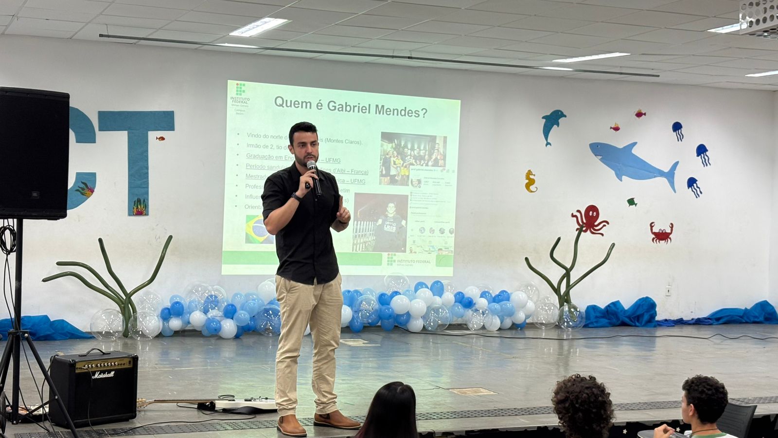 Com o tema “Ciência, Tecnologia e Educação: inovar para transformar”, o professor de Engenharia Mecânica do IFMG - Campus Betim, Gabriel Mendes, realizou experimentos práticos demonstrando como a ciência e a química estão presentes em nosso cotidiano. Ele enfatizou a relevância do conhecimento na transformação da sociedade e incentivou os estudantes dos cursos técnicos a buscarem constante aprimoramento, destacando que o mercado exige, cada vez mais, profissionais bem qualificados. Mendes também ressaltou o papel dos educadores em estimular a motivação dos alunos. Segundo ele, além de ensinar, é fundamental instigar nos jovens o desejo de aprender por meio da curiosidade. Ele explicou que é importante que os estudantes percebam como os conteúdos estudados serão úteis, mesmo que essa compreensão não seja imediata.