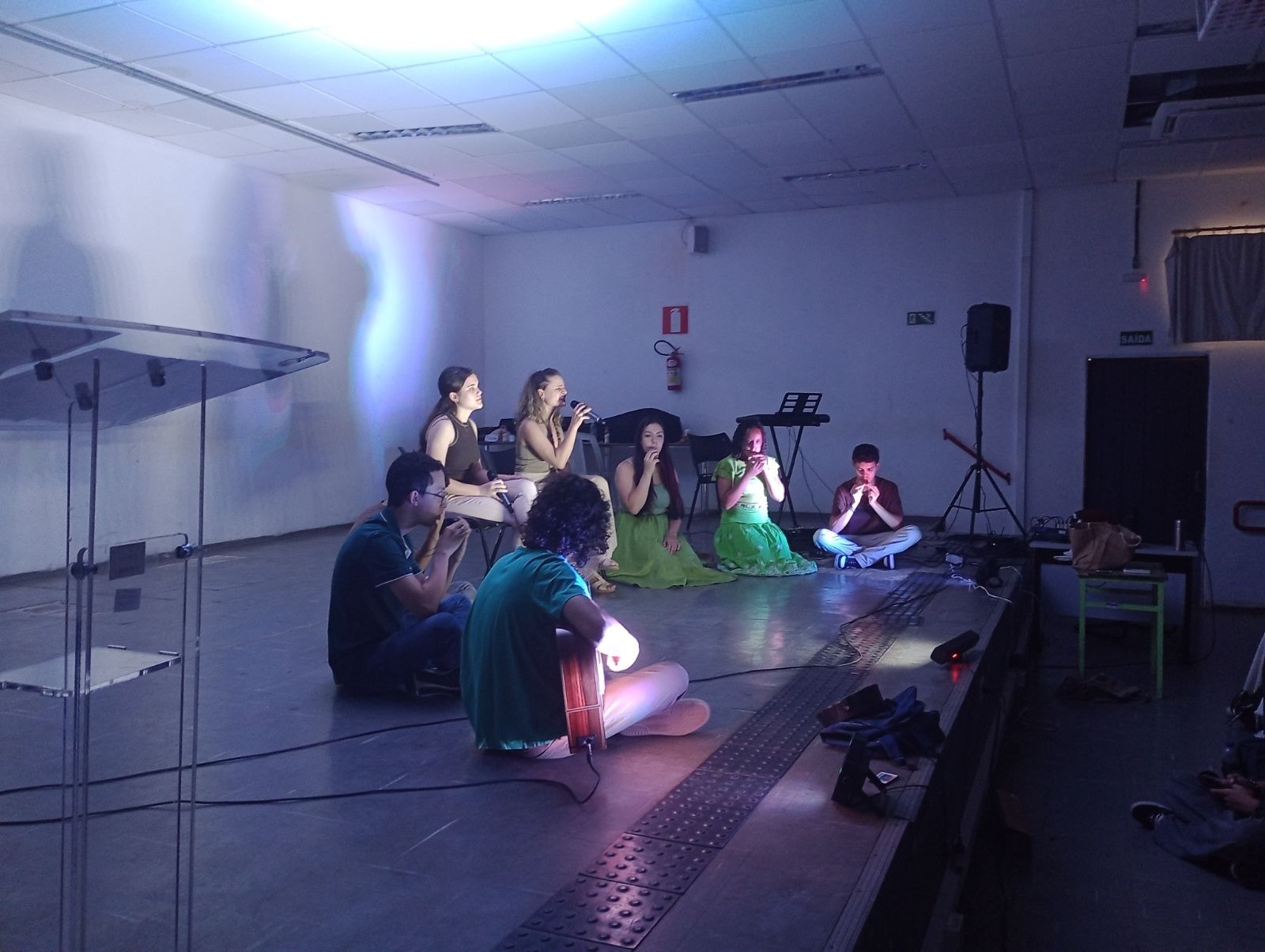 Teatro e Ativismo: A Cia dos Péssimos encenou o histórico discurso de Aílton Krenak na Assembleia Constituinte de 1987, seguida por um jogral de luzes baseado no poema "Índio, eu não sou", de Márcia Kambeba.