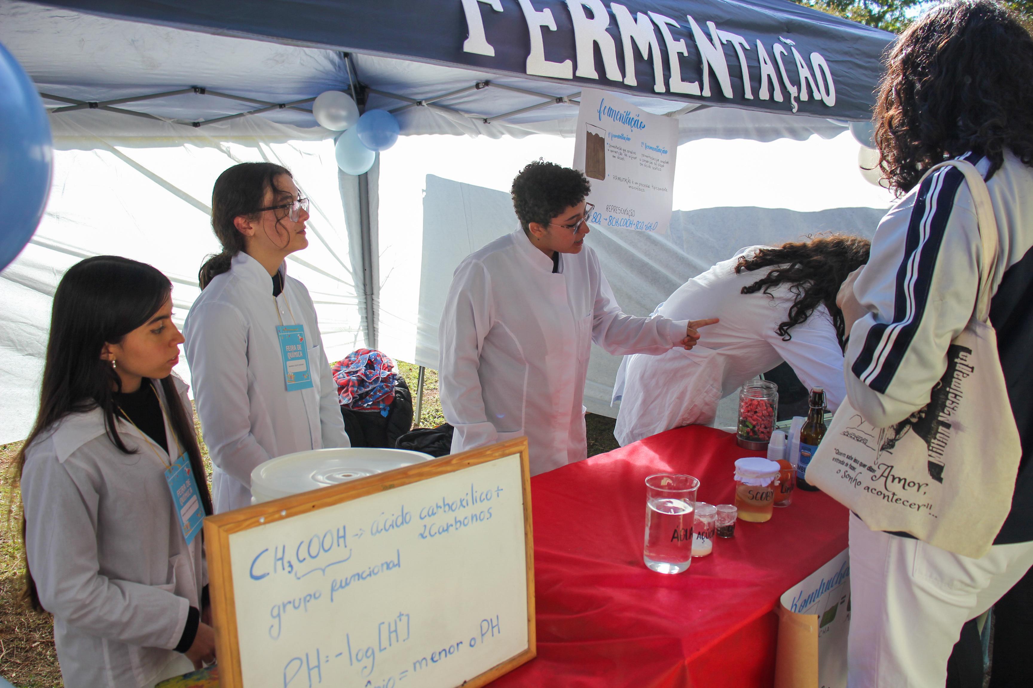 Para os estudantes de Química, a feira reforça o aprendizado teórico. Ana Laura Martins Rosa, 2º ano,