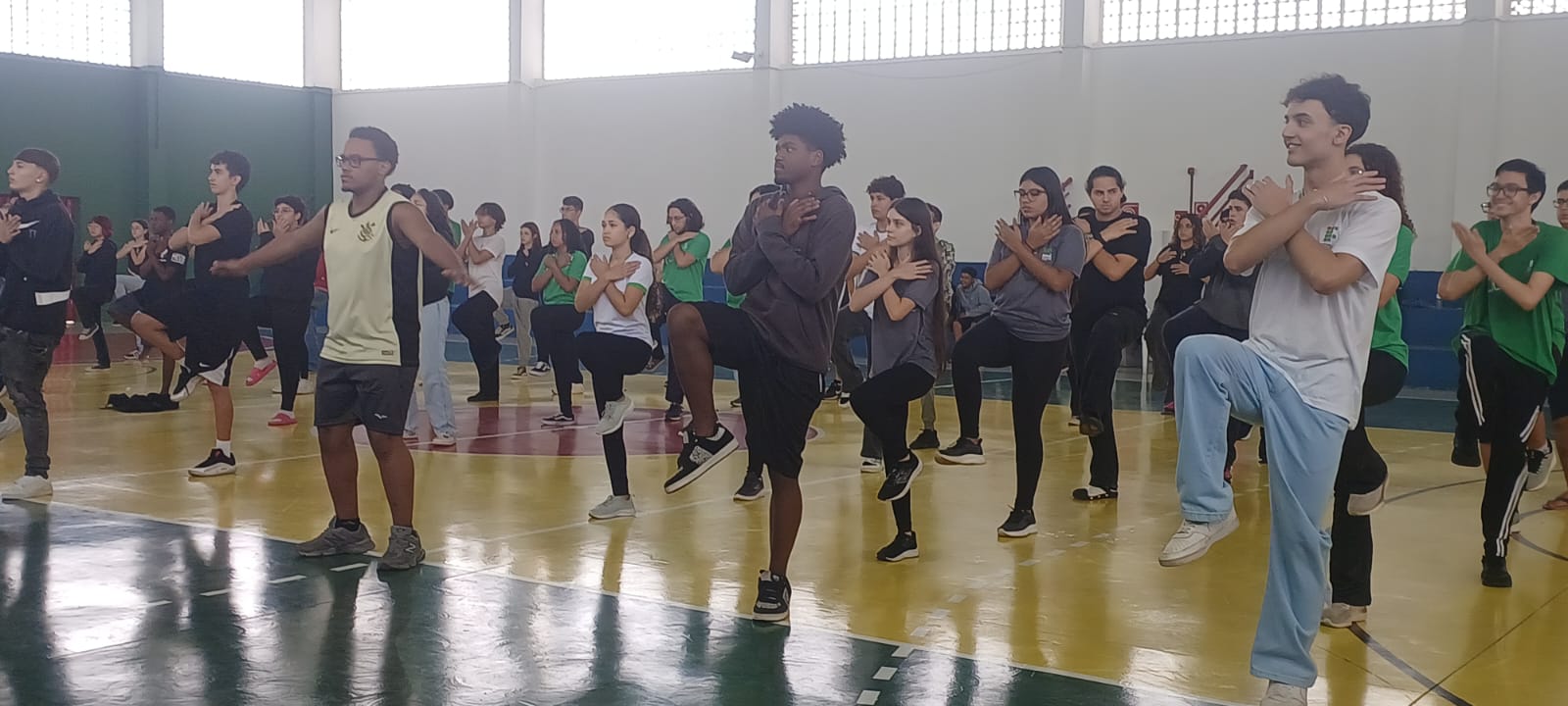 com a arte milenar do Tai Chi Chuan. Sob a condução do mestre Denilso dos Santos, com 33 anos de experiência na prática, os alunos experimentaram movimentos suaves focados na respiração e no equilíbrio.
